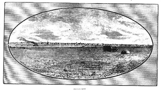 BUTLER County is located in the eastern part of Nebraska, lying about fifty-one miles west of the Missouri River, 350 miles from the western boundary of the State, and about midway between north and south. Its northern border is washed by the Great Platte River, which separates it from Colfax and Platte Counties; and it is bounded on the east by Saunders County; south by Seward and west by Polk. It has a climate cool enough for wheat and all northern productions, and sufficiently mild for the growth of fruit, vegetables and coarser cereals of southern localities. In altitude, it is 1,500 feet above sea level, and the contiguousness of the great plains guarantees the continual presence of a pure and constantly moving atmosphere. It is quite regular in shape, being square in all but its northern face, where the high-water mark of the southern shore of the Platte forms the legal boundary line. In area it comprises about 377,600 acres, 500 acres of which are wild forest land and upward of 10,000 tame forest and fruit trees, and the soil is tillable and fertile to the highest degree. It is watered by the Platte, the Blues, the Oaks, Skull, Bone, Wilson, Deer, Plum and other minor streams, together with their numerous branches. Well water is obtainable at a depth of from ten to sixty feet. In an irregular line from four to six miles south from the Platte, the bluffs or breaks spring suddenly up from the level plain, affording a landscape view of surpassing beauty and one peculiarly different from any view east of the Missouri. After pitching and tossing about promiscuously, these ridges and the interadjacent ravines cease, quite abruptly, yet seeming to blend all at once in the perfectly level table-land, unsurpassed in loveliness in any State. The contrast presented is most enchanting. Away to the southward and eastward lie the beautiful and charming valleys of the Big Blue and the Oak, marked in summer time by a thread-like continuation of green groves and plum thickets, winding in and out and through the nude plains. Approaching these, after crossing the table-land proper, a broad expanse of moderately rolling surface meets the eye, stretching out to the southward as far as it can reach, and including a region most admirably adapted to pasturage and agriculture. According to received theories this portion has been three times under water -- first, in common with the whole earth, under a universal ocean; next, beneath an immense North American inland sea, formed by the bulging up of the Rocky and Appalachian Mountain systems, and finally under a lake of a few hundred miles long, north and south, and somewhat narrower east and west, formed by the general upheaval of the entire continent. Anterior to all this, an island had existed in the universal ocean, whose western shore was not far east of this locality; so that, as it transpires, ancient Butler County occupied a position of honor, near the wave-washed shore, in the old original "Pacific," of the inland sea and the lake, their shore line being common and running in a north and south direction through Saunders County. The surface of the table-land is, approximately, 120 feet above the level of the Platte Valley, or bottom, and overlies the great common sand-bed of the ancient sea or lake. This quicksand stratum is often struck by spade and well auger, in the extreme western portion of the county, always at a depth of about ninety feet, showing that about twenty or thirty feet of this old sand level was cut out and carried down from bluff to bluff by the ancient Platte before it sank into its present narrow channel. The dark soil of the table-land extends about twelve inches from the grass roots, followed by three or four feet of dark clayey soil, which exhibits a tendency to crumble into pea-sized cubes and other shapes, by exposure to the sun and atmosphere. A soft yellowish clayey drift commences here and extends down about thirty feet, terminating in a thin strata of blue, soapy water-clay, which forms the bottoms of wells, except in the western townships, where it is frequently barren of water, in which event none is found short of the Platte level. Immediately overlying this water sheet is another soil, exactly similar to the surface soils, plentifully interspersed with snail and mussel shells and fragments of rotted wood, pointing to the existence of an ancient swampy forest, thirty or forty feet beneath us. Thence downward to the sand-bed we pass through a stretch of whitish yellow earth, full of chalk lime and coarse gravel seams, with an occasional small boulder. Forty feet through gravel and sand bring us to the immense blue black clay stratum, where the second water sheet is found, and over which are scattered boulders and stones from two to three feet in diameter down to two inches. In the next fifty feet, as shown by shafts at Skull and Deer Creeks, this clay develops into shaley soapstones, after which thin strata of fossiliferous lime rock, more soapstone, some scales of half-formed soft coal; and here geology awaits the further good offices of the drill and blast. The above includes a description of the Platte bottom, except as modified by the wash from the ridges and ravines adjacent to the table-land and rotted vegetation. Under the bluffs, the made soil is marvelously rich and productive. Previous to 1859, the territory included within the present limits of Butler County had never been cumbered with any human habitation, save the dismal "tepee " or "wick-ee-up." The first people of whom we have any account as inhabitants of Butler County are the Pawnee Indians. So far as may be learned from any vestiges now remaining, and from tradition, only three villages, or permanent homes of this tribe, were ever located within this county, and of these none were on the table-lands and none on any of the tributary streams, except very near their confluence with the Platte, a location where water is always obtainable in midwinter by 