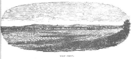 Early Settlement Part 2: Organization | General County Topics | Schools Means of Communication West Point: Fire Department | Public Schools | Churches The Press Part 3 :West Point (cont.): Hotels and Public Halls Societies | Manufactories General Business Topics | Biographical Sketches Part 4: Wisner: Early History | Churches | Societies | Business Bancroft | Biographical Sketches List of Illustrations in Cuming County Chapter Cuming County was one of the original counties of the Territory which were formed, when Secretary Cuming became Governor of Nebraska upon the sudden death of the Governor. Its boundaries were defined by a territorial act approved March 16, 1855 as follows: SECTION 1. Be it enacted by the Council and House of Representatives of the Territory of Nebraska: That the boundaries of Cuming County shall be fixed and established as follows: Beginning on the north of Burt County twenty miles west of the Missouri River, running thence south to a point 6 miles south from the north line of Dodge County, thence west to the west line of Dodge County, thence north along the east line of McNeale County twenty-four miles, thence east to a point east and no farther than the beginning, thence on a right line to the place of beginning, shall be known as the County of Cuming. During the succeeding summer Cuming County was surveyed, and in 1857 its boundaries were established definitely, to wit: "Beginning at the northwest corner of Township 20, north of Range 9, east of the sixth principal meridian, thence north to the northwest corner of Township 24, north of Range 9 east, thence west to the northwest corner of Township 24, north of Range 5 east, thence north to the southwest corner of Township 21, north of Range 5 east, thence east to the place of beginning, and all of the Territory comprised within the said limits." The seat of justice was changed from Catharine, now known as Dead Timber, Dodge County, to "Manhattan". The originators of Catharine in the summer of 1857, abandoned that locality and settling upon Section 4, Township 22, founded "De Witt." In March of this year the settlement at West Point was commenced, and by another year, the two places became rivals for the county seat. A petition for the calling of an election was signed extensively--considering the number of legal voters in the county--and forwarded to the Probate Judge of Burt County. The request having been granted, the first election in Cuming County was held at West Point, on Tuesday, October 12th, 1858. As it was understood that the result of the election would decide the location of the county seat, the nineteen citizens who cast votes were pretty vigorously "canvassed." The result, a majority of 5 for West Point, returned the following officers: W. R. Artman, Probate Judge; James C. Crawford, Treas.; G. W. Houser, Clerk; John D. Neligh, Treas.; Henry Cline, Sheriff; A. A. Arlington, John Bromer, and Josiah McKirahan, Commissioners. The newly elected officers qualified at Tekamah, Burt County. West Point was recognized as the county seat, and the old log shanty became the "court house." In the fall of 1859 this decision locating the county seat at West Point was sustained, almost unanimously. The first session of the District Court for the Third Judicial District in and for Cuming County, was held in West Point commencing on the 28th day of June, 1859. The following named persons were sworn in as grand jurors: William Loney, H. D. Peterson, L. D. Rhodes, A. L. Ward, J. B. Thomson, William Malcho, William Farley, H. Kloke, H. J. Wortman, James Wilson, C. L. Siecke, Charles Schuth, L. Grassett, James E. Spencer, M. Nelson, C. H. Wilde. This jury found a bill of indictment against A. M. Little for the crime of larceny. R. F. Stevenson and E. M. Clark were admitted to practice in this court at the time named. The first case taken up was the County of Cuming against Ernst Krespean, and the first case tried was one in which Josiah McKirahan was plaintiff and Wm. Ritzloff was defendant. On January 4, 1872, an election was held, in pursuance of call, and $30,000 bonds voted for the erection of a court house. R. B. Rockford was awarded the contract for $25,000, in May of that year, he binding himself to complete the building by January 1, 1873. Shortly after his time expired, suit was brought against him and his bondsmen to recover damages. The plaintiffs were awarded damages in the sum of $4,523.65. Subsequently the verdict was set aside, and the case dismissed for want of prosecution. The court house was completed in the spring of 1874, at a cost of $40,000. It is imposingly and solidly constructed of brick, two stories and basement, with a fine lofty tower. Its dimensions are 80x40 feet. The building stands on an eminence overlooking West Point, and is quite a prominent landmark. In the winter of 1873, the boundaries of Cuming were defined so as to take in two townships from the Indian reservations, and were thus described: Commencing at the southwest corner of Township 21, north of Range 4 east; thence east to the southeast corner of Township 21, north of Range 7 east; thence north to the northeast corner of Township 24, north of Range 7 east; thence west to the northwest corner of Township 24, north of Range 4 east; thence south to the place of beginning. The present county officers are: F. A. Mewis, County Judge; A. D. Beemer, Sheriff; H. D. Readinger, Superintendent of Public Instruction; F. W. Ragoss, County Clerk and Clerk of the District Court; D. W. Clancy, Treasurer; J. A. Nason, Surveyor; H. Klosner, Coroner; Commissioners, Chairman, Conrad Paul; Charles Schuth and W. W. Cones. Cuming County is specially adapted for the raising of corn, the yield on the uplands being as high as seventy-five bushels to the acre, and in the valleys eighty. Wheat yields, with proper care, from fifteen to twenty-four bushels. In this county there is no Government land, the 160,000 acres in the market being sold on average at 