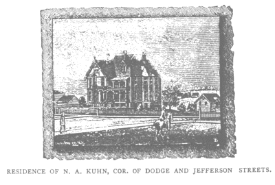 JOSLYN~LEISENRING GEORGE A. JOSLYN, manager of the Western Newspaper Union, at Omaha, first located in that city in April, 1880, going there to establish a branch office of the Western Newspaper Union; principal office at Des Moines, Iowa, with branch at Kansas City, Mo. He was born in Lowell, Mass., in 1848, and went to Montreal, Canada, in 1865 to engage in the manufacture of paper collars for another party, which he followed for twelve years, then engaged in the printing business in the same city for three years. Mr. Joslyn is now manager of the Omaha branch of the Western Newspaper Union, printing patent insides for over 100 western papers. He is also proprietor of the St. Charles Hotel, which is conducted under his supervision. S. T. JOSSELYN, paymaster Union Pacific Railroad, was born in Buffalo, N. Y., January 14, 1842. At the age of sixteen he was mailing clerk of the Buffalo Morning Express. In 1859 he became employed by the Illinois Central Railroad Company as storekeeper, at Amboy, Ill., and taught a winter term of school at Elkader, Iowa. In 1860-61 he enlisted as a private at the first call of the President, for three years service troops, on the breaking out of our late civil war, in the company which became Company C., Thirteenth Illinois Volunteer Infantry. Was made First Sergeant and First Lieutenant of the same company, was in command much of the time up to the expiration of our term of service. Captured flag at battle of Mission Ridge, Ga., November, 1863. Captured rebel flag of Eighteenth Alabama. Was also active Quarter Master of the Regiment for several months at the request of the Colonel. Was mustered out in the summer of 1864, at Springfield, Ill. Was then employed on the Winona & St. Peter Railroad, in Minnesota, as ticket and cash clerk, until January, 1866. From there to St. Joe on Hannibal & St. Joe Railway, until June, 1866. From there to Omaha and was at once connected with the Union Pacific opened Omaha Station and sold the first ticket out of Omaha over the Union Pacific. He was then transferred to the General Freight and Ticket Office, and was also clerk in office of General Superintendent Webster Snyder, and went to Green River in 1868 and kept the Company's store for contractors, and also built two miles of heavy grading at same time. In fall of 1868 he returned to Omaha and was appointed paymaster of Union Pacific. Is a member of Mount Calvary Commandery of Knights Templar. Married Miss Henrietta C. Cutler, of Buffalo, N. Y., September 21, 1969. They have two children, May E. and Blanche Hoxie. CHARLES KAUFMANN, fire insurance and real estate, came to Omaha October 23, 1869. He was born in Prussia, October 23, 1848, and came to America in October, 1869. He engaged in his present business in the spring of 1880. He was elected a member of the City Council, in 1879, as Ward Councilman for two years, and in 1881 as Councilman at large, for another term of two years. He has been secretary of the Merchants and Manufacturers' Union of Nebraska, since its organization in February, 1881. He is one of the founders of the Omaha Turner's Society, which was organized in 1874, and was presiding officer of that society from 1877 to 1881. He was married at Omaha, July 3, 1871, to Anna Ficenez, a native of Austria. They have four children, Charles, John Edward, Anna Christiana C., and Julius. EDWARD KAUFMAN, barber, 807 S. Tenth street, Omaha. Was born in Germany, August 15, 1854. Came to this country, August 28, 1880, and settled in Omaha where he has been in business since. CHARLES J. KARBACH, wagon maker, horseshoer and repairer. Was born in Germany, in 1834, and was engaged in that country as a farmer. He came to America, in 1852, and was for two years employed learning the trade of wagon maker and blacksmith at Sheboygan, Wis.. Came to Nebraska in 1858, located at Omaha and opened wagon making and horseshoeing establishment, which he carried on for eleven years. In 1869 entered into wholesale liquor business in company with two others, they ran the business for some two years, then Mr. Karbach carried it on alone for four years. In 1875, he again opened a wagon making and horseshoeing establishment in company with Henry Grebe, they were in partnership together about eighteen months, since then Mr. Karbach has been engaged in the business alone. His son William assists him. PETER J. KARBACH, wagon maker and blacksmith shop, was born in Germany in 1839. Learned the trade of blacksmith in that country. Came to America in 1857, was employed as a blacksmith in Chicago, Ill., then in St. Louis and St. Charles, Mo., for two years. Came to Nebraska in 1859, located in Omaha, he was employed by his brother, C. J. Karbach, for two years. In 1861, went to California, remained only a short time. Was then in the overland mail company's employ for one year in Nevada. Had a wagon and blacksmith business at Empire City, Nev., for three years. Returned to Omaha in 1866, and went into partnership with his brother, Charles J., in a wagon and blacksmith business, they continued together about two years, and since 1868 he has been alone, carrying on same business. Manufactures principally spring wagons, employs three men. He was married in Omaha, in 1868, to Margeret Lamb, native of Germany. They have five children. Arthur, Amanda, Emil, George, and Othalea. A. N. KEAR, saloon and city weigh scales, dealer in cattle, etc., 2101 Cuming street, was born in Denmark, February 5, 1853. In 1873 he came to this country and settled in Omaha, and has been connected with his present business industries since. In 1875 he was married to Miss Christiana Smith, in Omaha. She was born in Denmark, August 20, 1849. JOHN H. KELLOM, capitalist, Omaha, Neb., was born in Washington County, N. Y., in 1818, going to Auburn, N. Y, where he taught school, and took a course at Williams College, in 1842 went to Georgia and taught school for a number of years. He also read law, but never practiced, preferring t