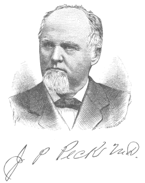 PAUL~READ DR. C. H. PAUL, surgeon dentist, came to Omaha in February, 1868, where he has since engaged in the practice of his profession. He has been engaged in dentistry since 1863. He was born in Cooperstown, N. Y., April 5, 1844, residing there until 1866. For two years subsequent there, he lived in Utica, N. Y. He married Miss Alice V. Phelps at Omaha, November 10, 1870, she being a native of Mount Pleasant, Iowa. They have one son, Victor H., who was born December 19, 1873. Dr. Paul is a member of the I. O. O. F., and of the Nebraska State Dental Association. JOHN T. PAULSEN, farmer and dairyman, corner of Twenty-first and Lake streets, was born in Schleswig-Holstein, Germany, in 1837; came to America in 1853, locating in Wisconsin, where he worked at his trade of tinsmith, until 1857, when he came to Omaha, where he followed his trade till 1862; he then engaged in the dairy business. At present he has fifty head of cattle in his dairy, his sales being 100 gallons of milk per day. In addition he has a large farm of 240 acres, which he now operates, giving it most of his attention and time since 1876. He raises large quantities of corn, millet and timothy and clover hay. He was married in 1861 to Miss Anna C. Hagesborn, who is also a native of Schleswig-Holstein. They have six children, Edmund, Emma, Herman, Henry, Augusta and William. [Portrait of J. P. Peck, M. D.] JAMES PORTER PECK, M. D., second son of Sherman and Anna Peck, was born in Stow Tp., then Portage (now Summit) County, Ohio, October 11, 1821. During his infancy his family moved to Hudson, and afterwards in 1833 to Cuyahoga Falls, both in Summit County. At the age of ten years the Doctor went into the office of the Ohio Observer to learn the printing business, at which he worked most of the time until the age of nineteen. While employed in the office of the Ohio Statesman at Columbus, Ohio, he began the study of medicine, devoting such leisure time thereto as he had, and finally in the spring of 1842 he went to Chillicothe and regularly began the study in the office of Dr. Wills, but from sickness was obliged to abandon the study that fall for some vocation that would afford means of subsistence. In the fall of 1842, there being a division in one of the great political parties, he was employed to go to Cincinnati and purchase the material for a printing office, and published a campaign paper at Chillicothe, afterwards until the spring of 1848 was employed in the dry goods trade as salesman at Chillicothe, and Circleville, when he returned to Akron, Ohio and resumed the study of medicine in the office of D. D. Evans, M. D., and the following winter attended his first course of lectures. During the memorable cholera epidemic of 1849, in company with his preceptor, he went to Sandusky where the disease had been so fatal and panic so great, that every physician had left the city, and all business completely suspended. Remained there seven days, and until Dr. Evans was attacked who was immediately taken aboard a steamer and run down to Cleveland. The Doctor graduated at the Cleveland Medical College in the spring of 1850, the graduating class numbering seventy-three, faculty consisting of Professors Delamater, Dean, Ackley, St. John, Kirtland, Cassels, and Delamater, Jr. Located at Akron, and in June was married to Elizabeth H. Ames (daughter of Elijah Ames, of New London, Conn.,) at Cleveland. Remained at Akron until 1856, when he with wife and two sons removed to Omaha, Neb. In April, 1857, lost by death his eldest son William Ames, the younger, Edward P., being now a resident of this city. Although the Doctor was somewhat engaged in the freighting business on the plains from 1860 to 1866, he has always been in active practice as he is now. In an early day he was called to great distances in surgical and other important cases, incurring the hardships incident to a new and sparsely populated country. P. L. PERINE, cashier of the Land Department of the U. P. R. R., is a native of New York State, and was born in the town of Ira, Cayuga County, February 24, 1829. At the age of thirteen he left his father's farm, and engaged as a clerk in the store of G. S. Murfey, of Auburn, Cayuga Co., N. Y., and afterwards in a store in Baldwinsville, Onondaga Co., N. Y. In 1854 he engaged in general merchandise business in Baldwinsville under the firm name of Allen & Perine, and continued the same for five years, when, having sold out, clerked in a dry goods house in Syracuse, N. Y. He then returned to Baldwinsville, and became a member of the firm of W. H. Downer & Co., engaged in general merchandising. In 1863, upon the organization of the First National Bank of Baldwinsville, he was elected bookkeeper and teller, and in 1863, became its cashier, which position he held until 1869, when, having resigned, he came to Omaha, and was appointed to his present position of cashier of the Land Department of the U. P. R. R. He is a member of Seneca River Lodge of A., F. & A. M., No. 160, of Baldwinsville, N. Y. For many years he was Town Clerk of the town of Lysander, Onondaga Co., N. Y. Married Miss Gertrude Parker, of Baldwinsville, N. Y., and has one child, Grace W. PERKINS & LEAR, new and second-hand furniture and stoves, 1416 Douglas street, Omaha. Established in 1880. Mr. Perkins is a native of Vermont, and came here in 1873 and engaged in the mercantile industries of this place, with which he has been identified since. In 1881 he was married to Miss Sally V. Hickman, who was born in Illinois. The firm are active and progressive and fully alive to the requirements of the times. HENRY PETERS, butcher, was born in St. Louis, Mo., in 1857, and shortly after removed with his people to Davenport, Iowa, where he was reared and educated to his present business, which he followed there for six years. He then went to Denver City, Col., but returned soon after and located in Atlantic City, Iowa, and followed his business there for two years, after whic