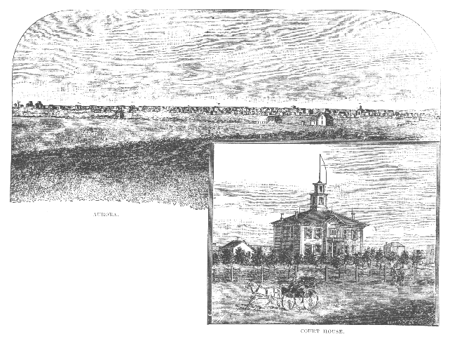 Orville City Hampton: Biographical Sketches South Platte Precinct (Biographical Sketch) Other Towns Illustration: [View of Aurora and Court House.] |