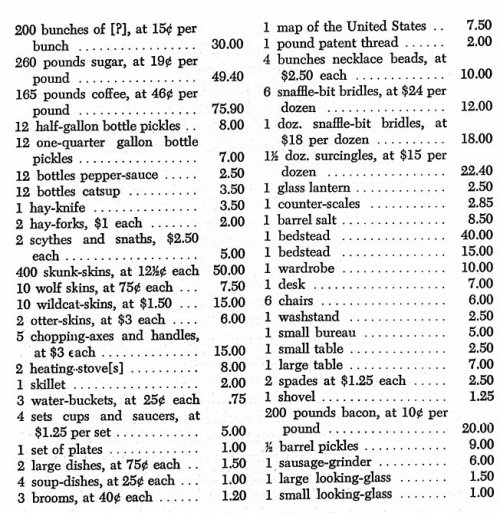 On May 17, 1864, a few Cheyenne raiders arrived at the Great Bend ranch between 10 and 11 A. M. Frank Cole was there, and so was John Sechler (an employee of trader Orson G. Stanley). Surprised, and outnumbered, the two white men watched helplessly while the Indians took away four mules, nine horses, and one jackass. Before leaving, the Cheyennes made it known they intended to return in force, and kill all the ranchmen or white men they could find on the Santa Fe trail, as soon as the stolen animals had been taken to a place where the owners could not recover them. Unable to hire anyone to stay at the ranch with him, and afraid to remain alone, Frank Cole packed his small wagon with as much goods is it could carry, and headed for Cow Creek ranch (17 1/2, miles eastward). The Cheyennes came back later, plundered the vacated trading post, and caused damage to the house and corral. As listed by Curtis & Cole, in their claim against the Cheyennes, the goods taken or destroyed were these: