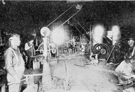 The shop is well equipped with all kinds of Modern machinery for blacksmithing and repairing, having three forges, a disc grinder, trip hammer and power drill with gasoline engine.