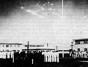 The first recruits arrived in September, 1942, and were quartered in civilian homes until they moved to the fairgrounds on October 1. When the navy stopped enlisting men for service at a specific base in mid-November, about 1,200 Kansas and Missouri men had enlisted for duty at Hutchinson. The aircraft industry at Wichita was a source of skilled personnel, and since the Boeing plant there manufactured the Stearman trainers, many employees capable of servicing that aircraft were recruited for duty at Hutchinson. By October 27, 104 men had graduated from basic training at the fairgrounds and were assigned to various positions. After 1942 the general high character of the men began to decline as recruits were brought in from outside the immediate region. This was particularly true when 275 sailors arrived from Dallas on February 15, 1943. Navy policy dictated that when a new station needed a complement of men, established bases would be asked to help meet that need. Such a practice was beneficial to the older stations because commanding officers rounded up the undesirables -- a routine known as "cleaning out the brig -- and sent them off to their new home. As a result, many of the disciplinary problems at the new station came from malcontents and troublemakers who arrived from other bases; they kept the lines long at captain's mast. |