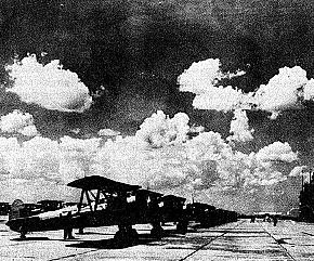 EARLY in 1938 when war was almost certain in Europe, congress, concerned about the state of the nation's defense, was stimulated to study the navy's needs and authorized a special board to make recommendations concerning naval air stations. That body, known as the Hepburn board, recognized that great expansion of the navy would be necessary if the United States became involved in the war. Suggesting a policy of preparedness, the board recommended the enlargement of 11 existing naval stations and the establishment of 16 new ones. About that same time a navy board also recommended doubling the number of pilots. [1] As a result of the Hepburn and the naval boards' recommendations, congress passed the Naval Reserve act of June 13, 1939, which authorized the training of 6,000 aviation reserve officers and the establishment of new training bases. In September of that year, congress, in a further attempt to bolster defense, authorized the navy to maintain 4,500 planes. That number was increased to 10,000 in June, 1940, after the fall of France and was quickly raised to 15,000 the following month-a 500 percent increase over the 1938 quota. In January, 1942, President Roosevelt issued an executive order directing the navy to acquire an air strength of 27,000 planes, but as late as June 30, 1941, the navy had only 2,172 aircraft. With the call for such tremendous expansion of the navy's air force, its air stations were expected to be overcrowded in a short time since they were geared in size and number to peacetime needs. Although there were 31 naval airfields in the United States and overseas at the time of the Hepburn report, some of those fields were no more than isolated landing strips which could not support maintenance and training facilities for a navy at war. [2] On May 27, 1941, the President proclaimed a national emergency and by executive order called all naval reservists who were not on a deferred status to active duty. With the reserve activated and aircraft production on an enlarged scale, the naval aviation cadet training program also began to expand. As the cadet program grew and naval aviation shore establishments increased in number, Secretary of the Navy Frank Knox recommended the use of civilian airports whenever feasible to hasten training programs. By the end of fiscal year 1942, naval aviation training had been accelerated to the point where 2,500 cadets could begin instruction each month. In addition, 20 new air stations had been commissioned and two naval reserve aviation bases had been placed in full operation. Eight new air stations as well as nine reserve stations, including the Kansas bases at Olathe and Hutchinson, were scheduled for commissioning during the next fiscal year. [3] The second World War did not introduce the navy to Kansas. A naval reserve air base was already in operation at Fairfax Field, the municipal airport at Kansas City. That base was commissioned on July 1, 1935, and at that time consisted of one naval officer and two marines; on July 12, one navy and one marine squadron were formed. Although both squadrons had regular training periods, only the aviators received instruction during the summer months, and the average monthly size of the pilot graduation classes was 36. Not until the winter of 1939 did the navy begin a year-round pilot training program there. [4] The first aircraft used for pilot training at Fairfax Field were the Curtis Helldivers; however, these planes were soon replaced with NY-3 trainers. The facilities at Kansas City proved adequate for the naval reserve until 1941, when an increase in transport traffic and the erection of the North American Company's B-25 bomber plant at the site crowded the reserve and made training hazardous. The navy began to look for another site on which to locate the Kansas City reserve and in January, 1942, purchased a section of gently rolling land which included the Johnson county airport and was located about 20 miles southwest of Fairfax Field, between Olathe and Gardner. With the award of a cost-plus-fixed-fee contract to a private builder, construction began on January 5, 1942. Priority construction included a hangar, an assembly and repair shop, barracks, a mess hall, a ground-school building, and storage facilities for 200,000 gallons of gasoline. Three 5,000-foot runways were laid and property was acquired for five outlying or auxiliary airfields. Later enough land was leased to provide 14 outlying fields. The navy purchased the airfield from Johnson county for $72,343.01 and spent an additional $12,234,527.41 on the original contract. Construction was completed in early March, 1944. The navy projected that the Olathe base would quarter 2,000 enlisted men and about 100 officers; however, by the end of the war the base could house about 6,400 sailors. [5] By July, 1942, construction had progressed sufficiently to enable the base to begin operation, and on July 6, 100 enlisted men and 72 cadets arrived from Fairfax Field. The base was officially commissioned on October 1, 1942, as the United States Naval Reserve Aviation Base, Olathe, Kansas, but its name was changed on January 1, 1943, to the United States Naval Air Station in order to give it comparable status with other air bases. The purpose of the Olathe air station was to provide primary flight training for naval cadets and quarters for traveling officials. The planes primarily used for aviator training were the Stearman N2S two-seater biplanes. The navy preferred to use them as trainers because their engines were simply mounted and could be changed entirely in two hours, facilitating maintenance in the field. Furthermore, the Stearmans were rugged and well suited to the handling given them by student pilots. Because navy policy required trainers to be painted yellow, the cadets nicknamed them the "yellow perils," but they were not as dangerous as the nickname suggested since during the two years the air station served as a primary trainin